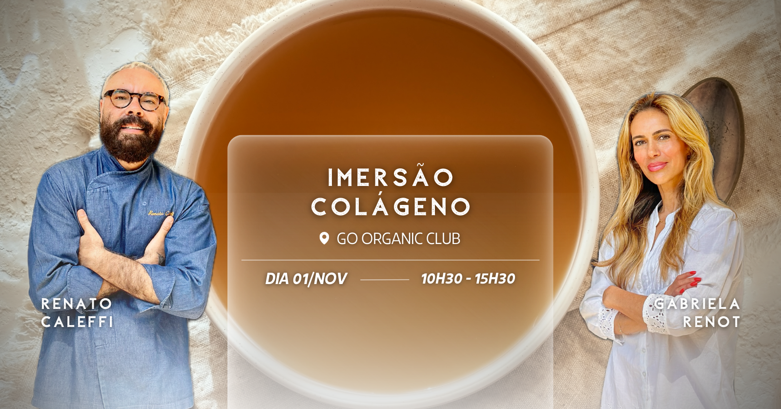 Um dia inteiro para desvendar os segredos do colágeno e aprender receitas exclusivas com caldo de ossos, gummies funcionais, shots e muito mais.